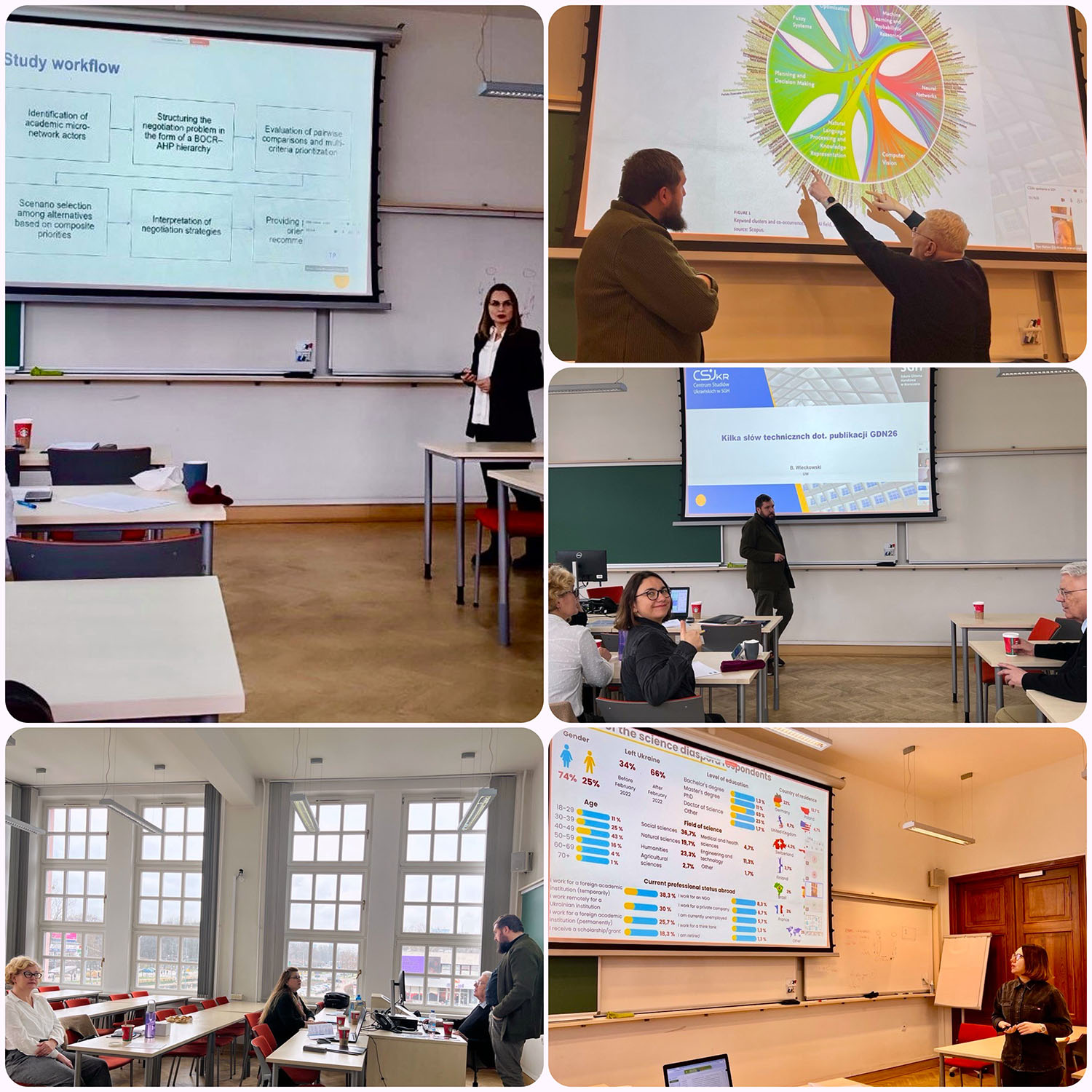 Виступ Вікторії Яновської на тему «Моделювання стратегій переговорів в академічних екосистемах в умовах асиметричної влади сторін» був присвячений застосуванню інструментів м’якої аналітики даних і теорії переговорів для аналізу взаємодії між академічними інституціями в умовах нерівного доступу до ресурсів, впливу та інформації. На семінарі були також представлені результати досліджень на теми «Переговори в розподілених системах: Контингентна модель консорціального узгодження (CMCA)» (Bartek Wieckowski, Tomasz Psonka), «Етнічний капітал у формуванні переваг на основі методу аналізу ієрархій (AHP) та переговорах у сфері публічної політики» (Вікторія Гурочкіна), «Моделювання партнерських систем шляхом кластеризації та багатокритеріального відбору: тематичне дослідження українських мігрантів у Польщі» (Чугаєвська Світлана). Представлені результати стали підґрунтям для подальшого розвитку досліджень в рамках підготовки до 26th International Conference on Group Decision and Negotiation.