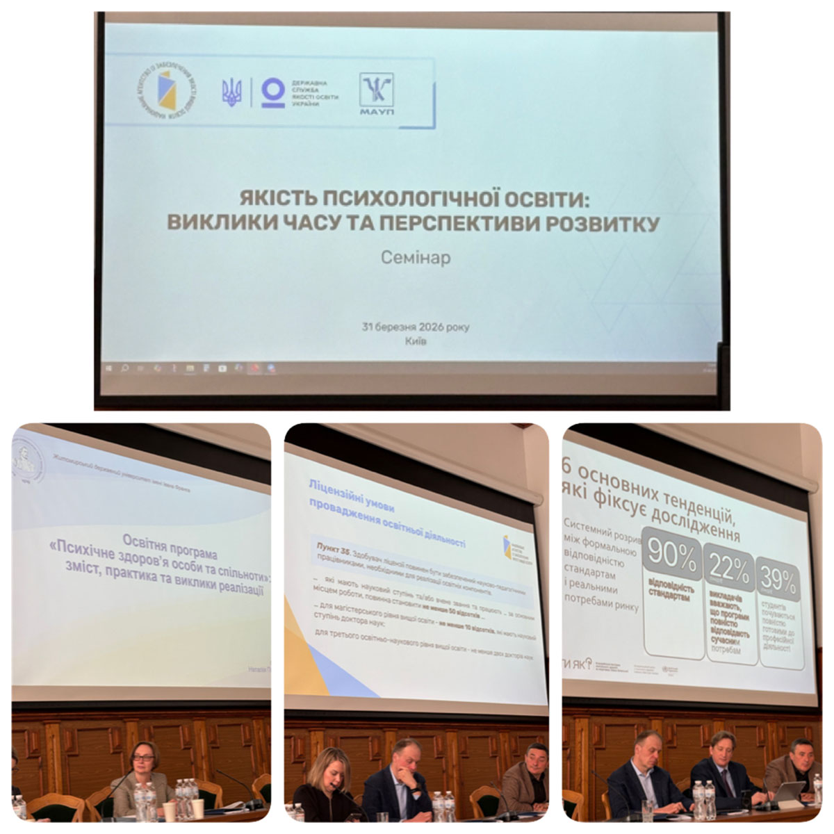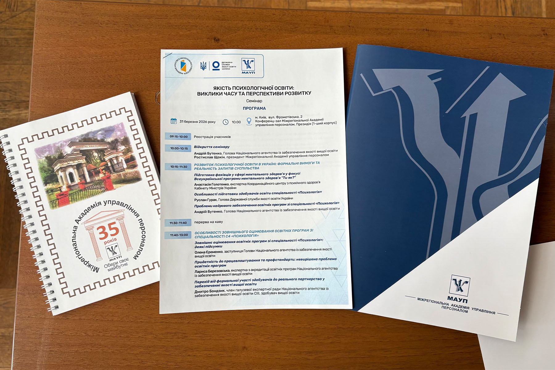 31 березня 2026 року в місті Києві відбувся фаховий семінар «Якість психологічної освіти: виклики часу та перспективи розвитку», організований за участі Національного агентства із забезпечення якості вищої освіти, Державної служби якості освіти України та Міжрегіональної Академії управління персоналом.