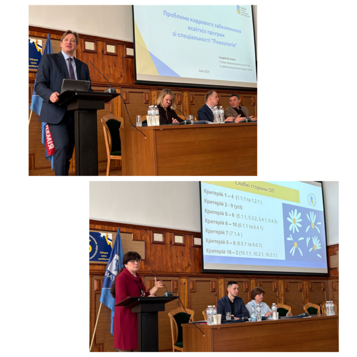 Під час відкриття семінару Голова Національного агентства із забезпечення якості вищої освіти Андрій Бутенко наголосив на важливості підготовки висококваліфікованих фахівців у сфері психології, підкресливши необхідність оновлення освітніх програм, посилення практичної складової навчання та орієнтації на потреби суспільства у сфері ментального здоров’я.