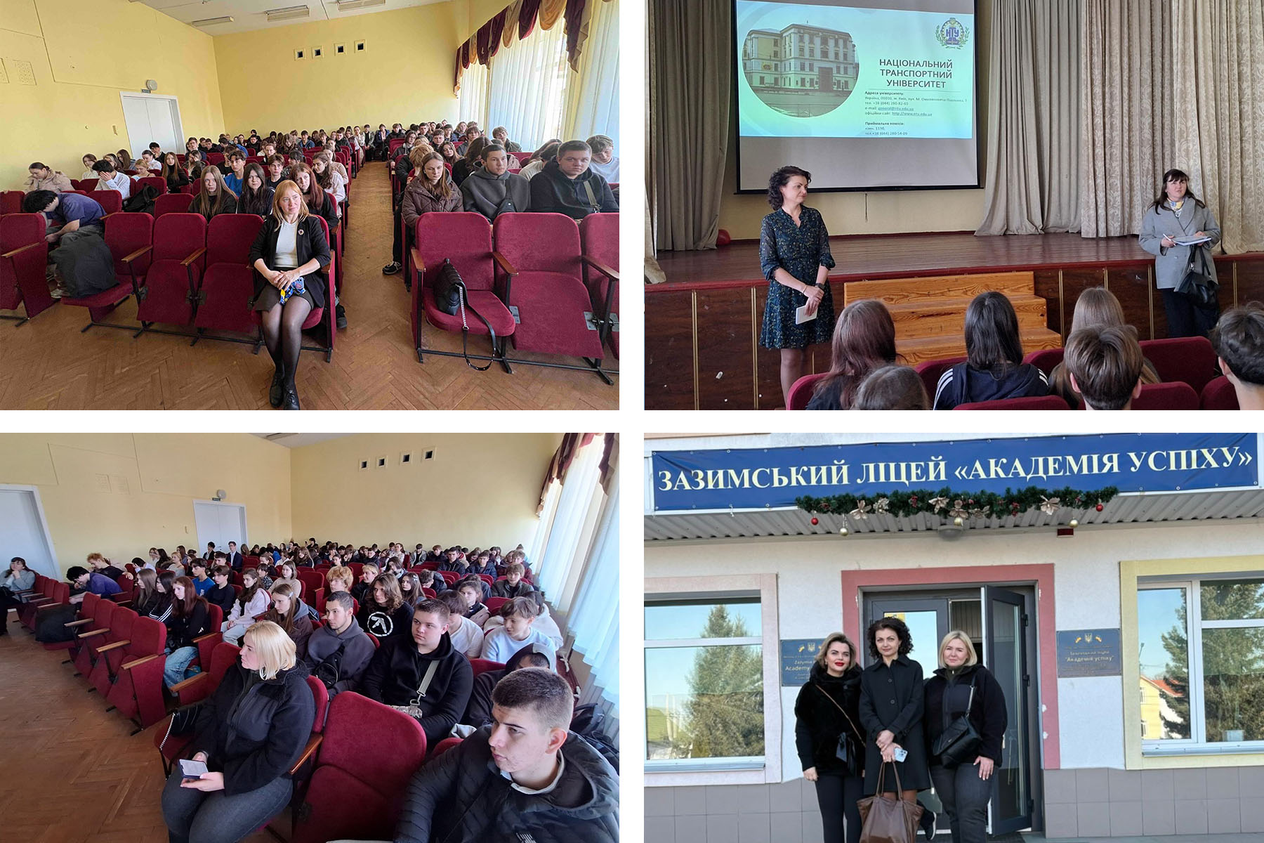 Перша зустріч відбулася з учнями 11-х класів загальноосвітніх шкіл Зазимської ОТГ. Захід був спрямований на ознайомлення майбутніх випускників з можливостями здобуття освіти за першим (бакалаврським) рівнем вищої освіти, особливостями вибору професії та перспективами професійного розвитку. В.о. декана факультету економіки та права Чебан Олеся презентувала спеціальності та освітні програми Національного транспортного університету, розповіла про навчальні можливості для студентів, сучасні підходи до підготовки фахівців, практичну підготовку та перспективи працевлаштування випускників. Заступник відповідального секретаря приймальної комісії Ганношина Ірина детально поінформувала учнів про умови вступу до університету, особливості вступної кампанії. В.о. завідувача кафедри психології Скляренко Інна розповіла про специфіку навчання за спеціальністю «Психологія», основні напрями підготовки майбутніх фахівців, можливості практичної підготовки студентів, а також про роль психології у сучасному суспільстві. Особливу увагу було приділено значенню психологічних знань у професійній діяльності, розвитку емоційного інтелекту, навичок комунікації та вмінню працювати з людьми. Керівництво університету щиро дякує начальниці відділу управління освіти, культури, молоді та спорту Зазимської сільської ради Наталії Шиголь за сприяння в організації та проведенні профорієнтаційного заходу, підтримку освітніх ініціатив та плідну співпрацю.