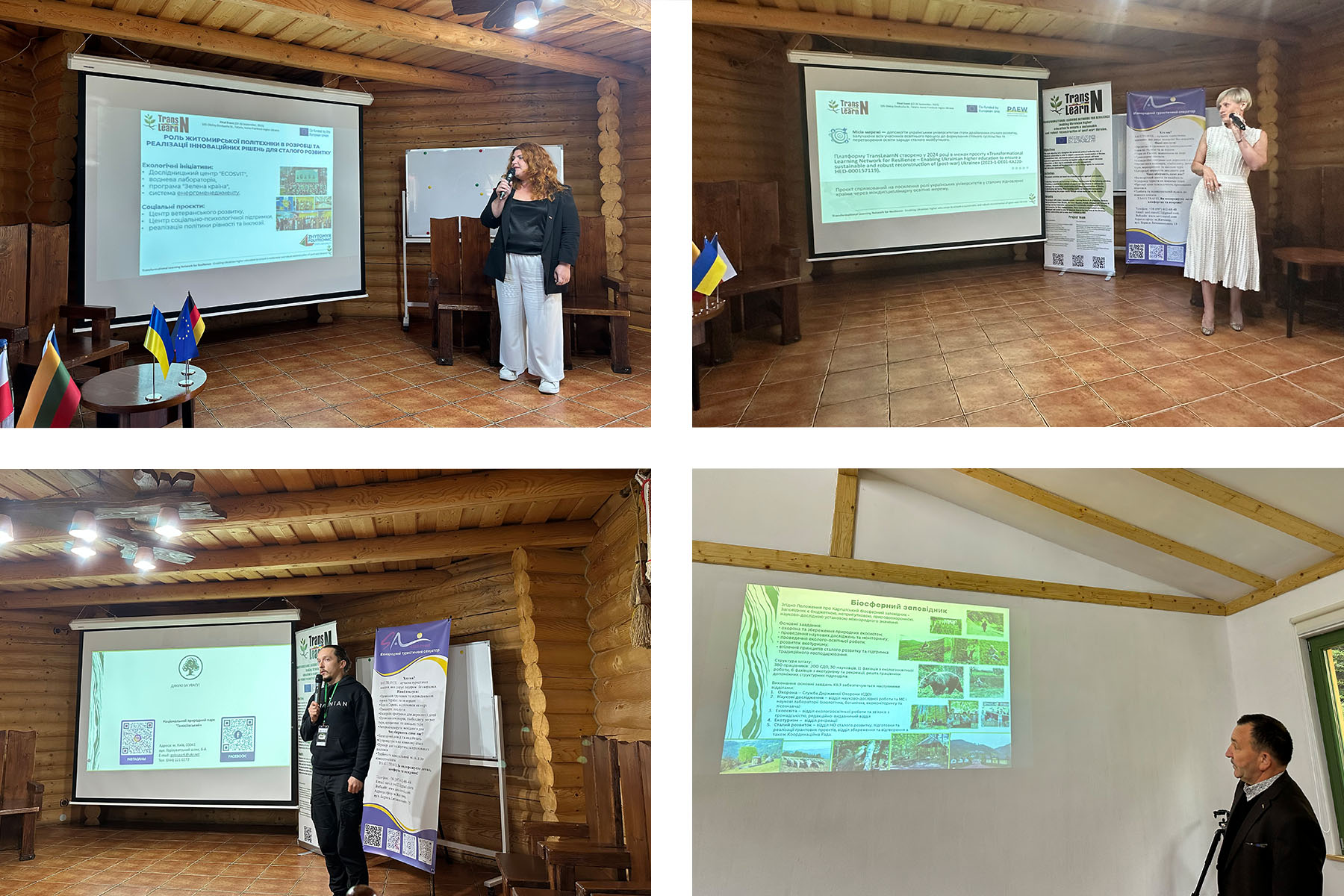 Робота продовжилася у Карпатському біосферному заповіднику. Після вітальної промови директора Миколи Рибака відбулася презентація діяльності заповідника. Далі відбувся семінар «Взаємодія університетів, природоохоронних територій та громад» із презентацією досвіду роботи різних заповідників, обговорення ключових питань співпраці. Ольга Заяц представила досвід співпраці Національного транспортного університету з Зазимською, Феодосіївською громадами, а Марина Дехтяр презентувала спільний проект просвітницької компанії по управлінню поводження з твердими побутовими відходами в Димитрівській громаді. Представники Національного природного парку «Голосіївський» та Чорнобильського радіаційно-екологічного біосферного заповідника поділилися своїм досвідом спільних проектів з українськими університетами та запросили до співпраці усіх бажаючих. Завершальним робочим етапом дня стала презентація платформи природоохоронних територій Research Community for Ukrainian Recovery від доц. Віталія Сватка. Команда, що працювала над створенням платформи, також запросила учасників заходу до приєднання та співпраці з метою підтримки природоохоронних та соціальних ініціатив.