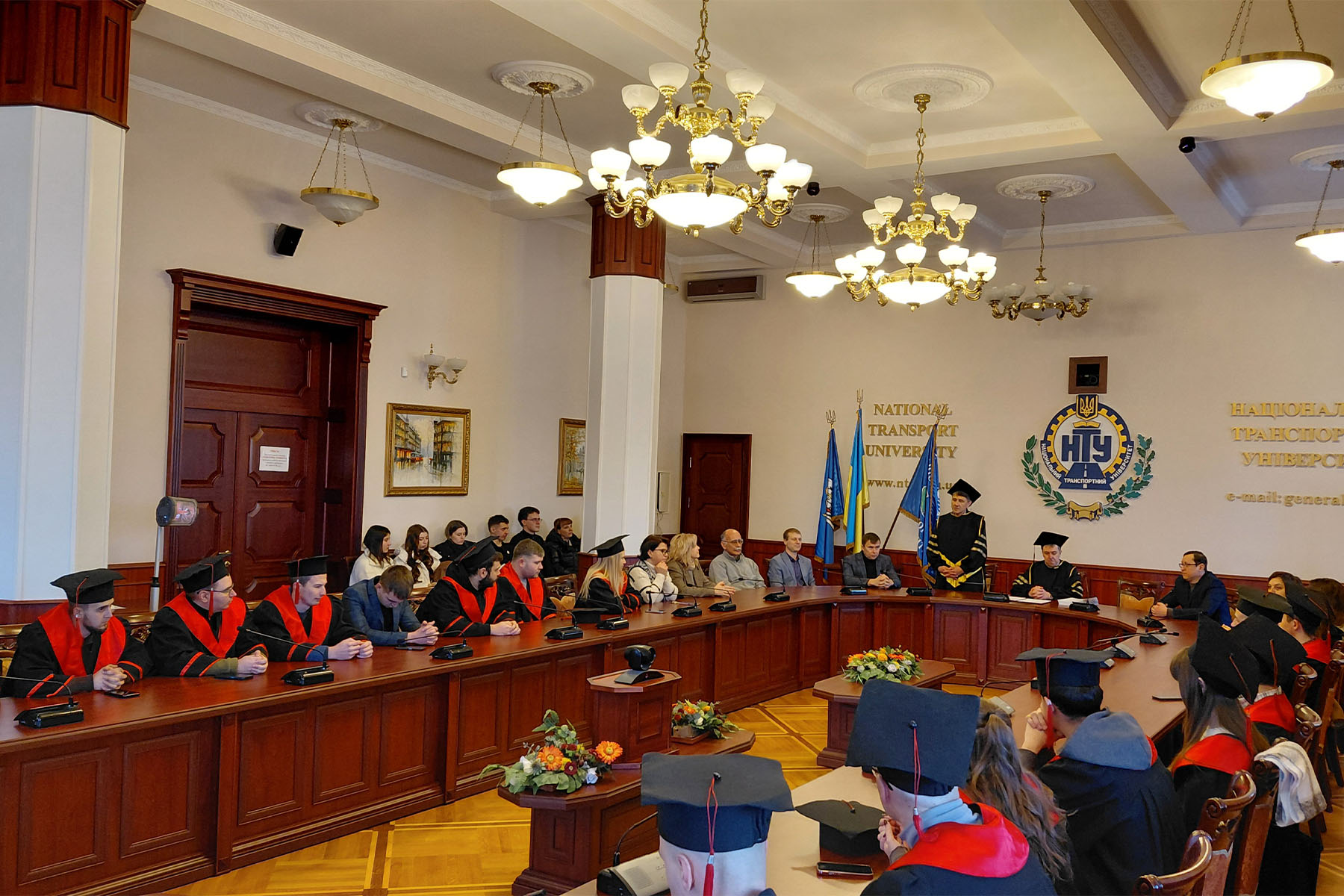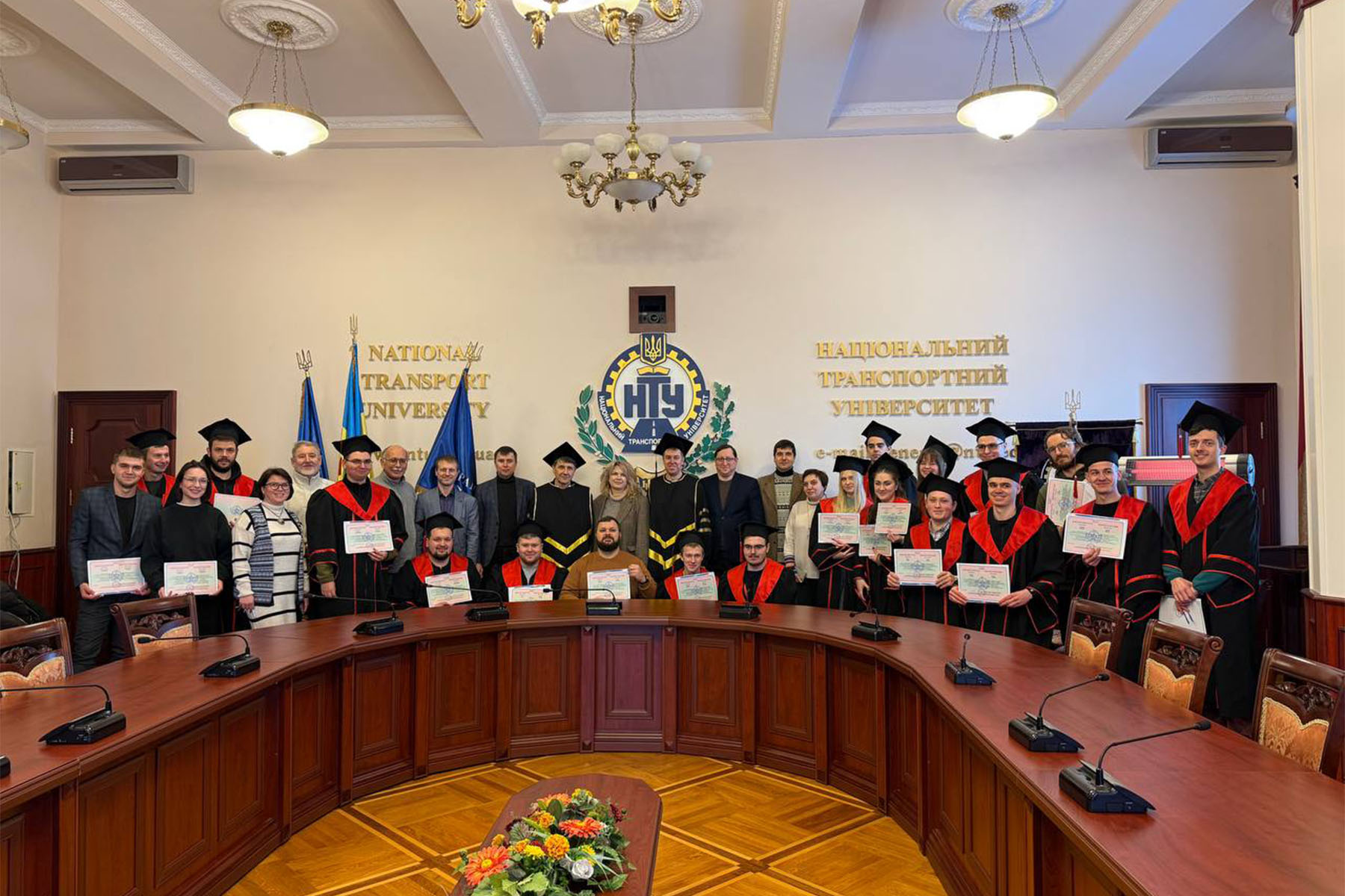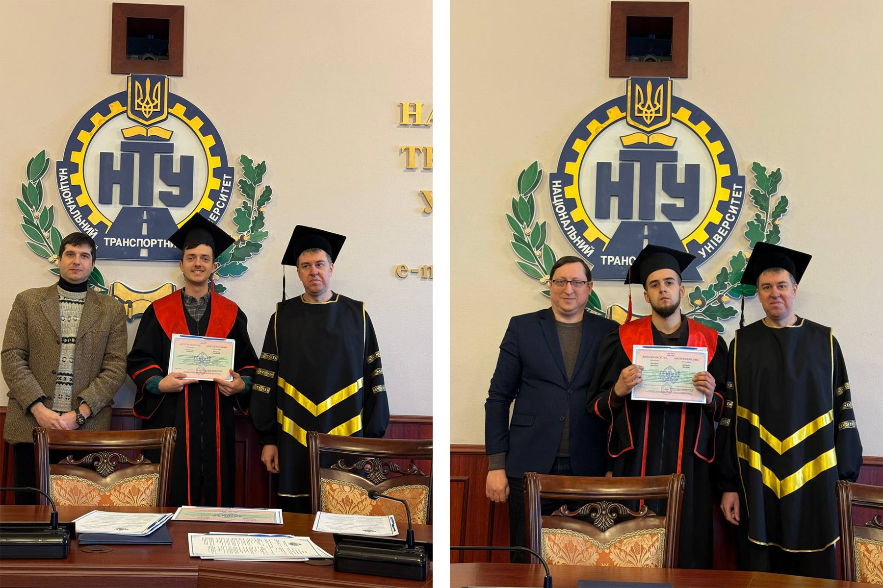 19 січня 2026 року в залі засідань Вченої ради Національного транспортного університету відбулася урочиста церемонія вручення дипломів випускникам автомеханічного факультету за освітньо-професійними програмами підготовки магістра. Попри складні погодні умови – сильний мороз та періодичні відключення електроенергії і теплопостачання, що, на жаль, супроводжують нас нинішньої зими й створюють додаткові труднощі як для працівників освіти, так і для студентів, захід пройшов у теплій, щирій та піднесеній атмосфері. До зали засідань, окрім випускників, завітали їхні батьки та друзі, а також викладачі, які прийшли привітати молодих фахівців із завершенням важливого етапу їхнього професійного становлення.