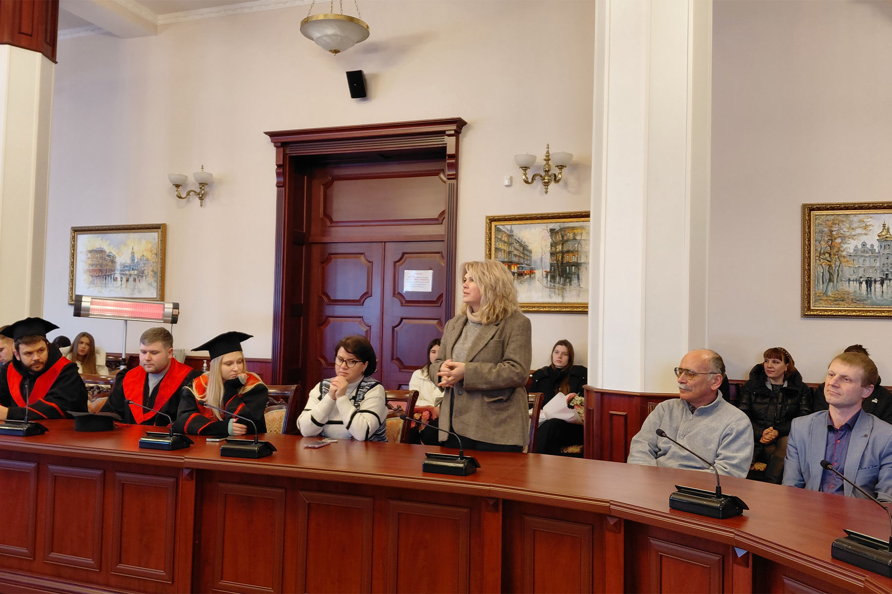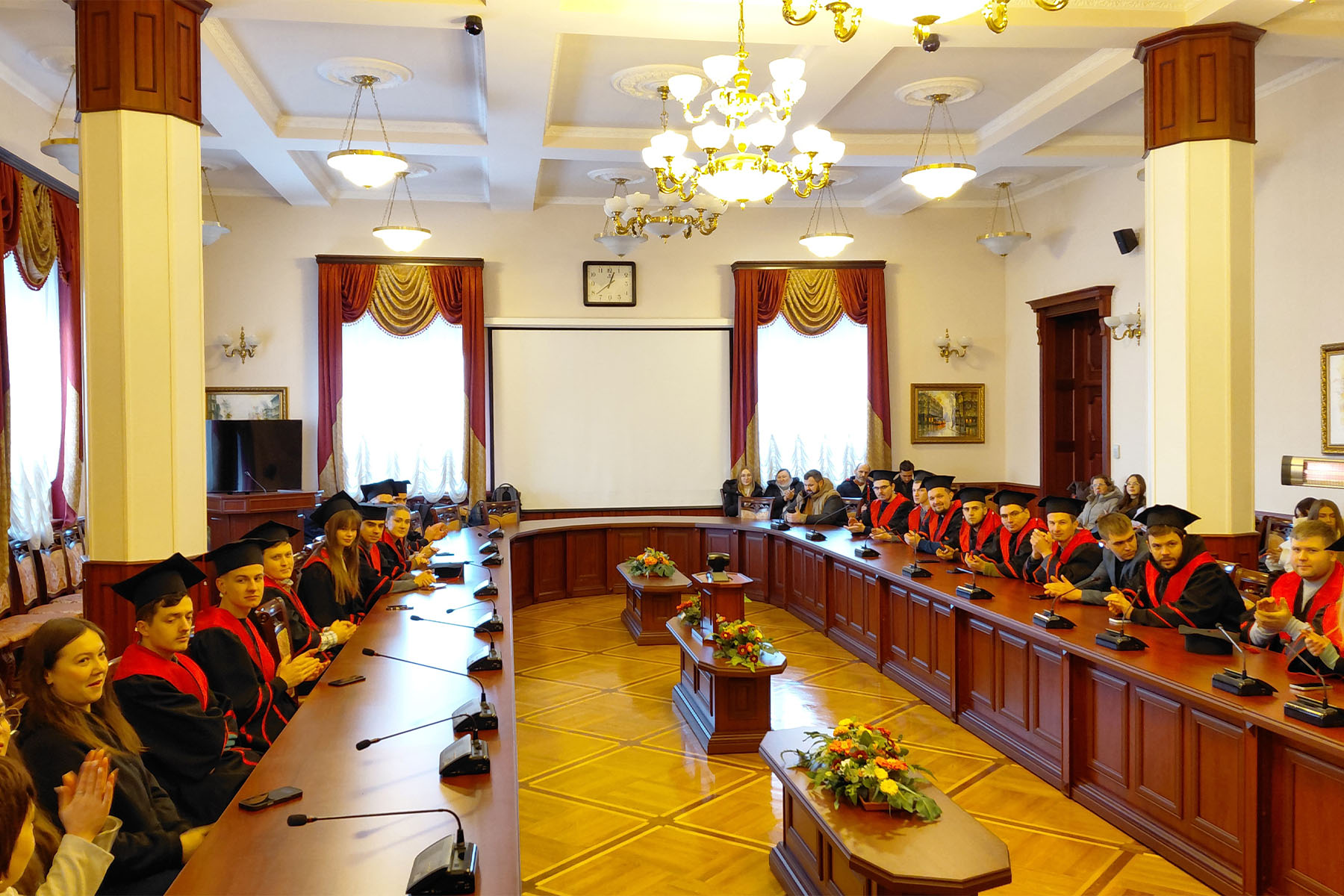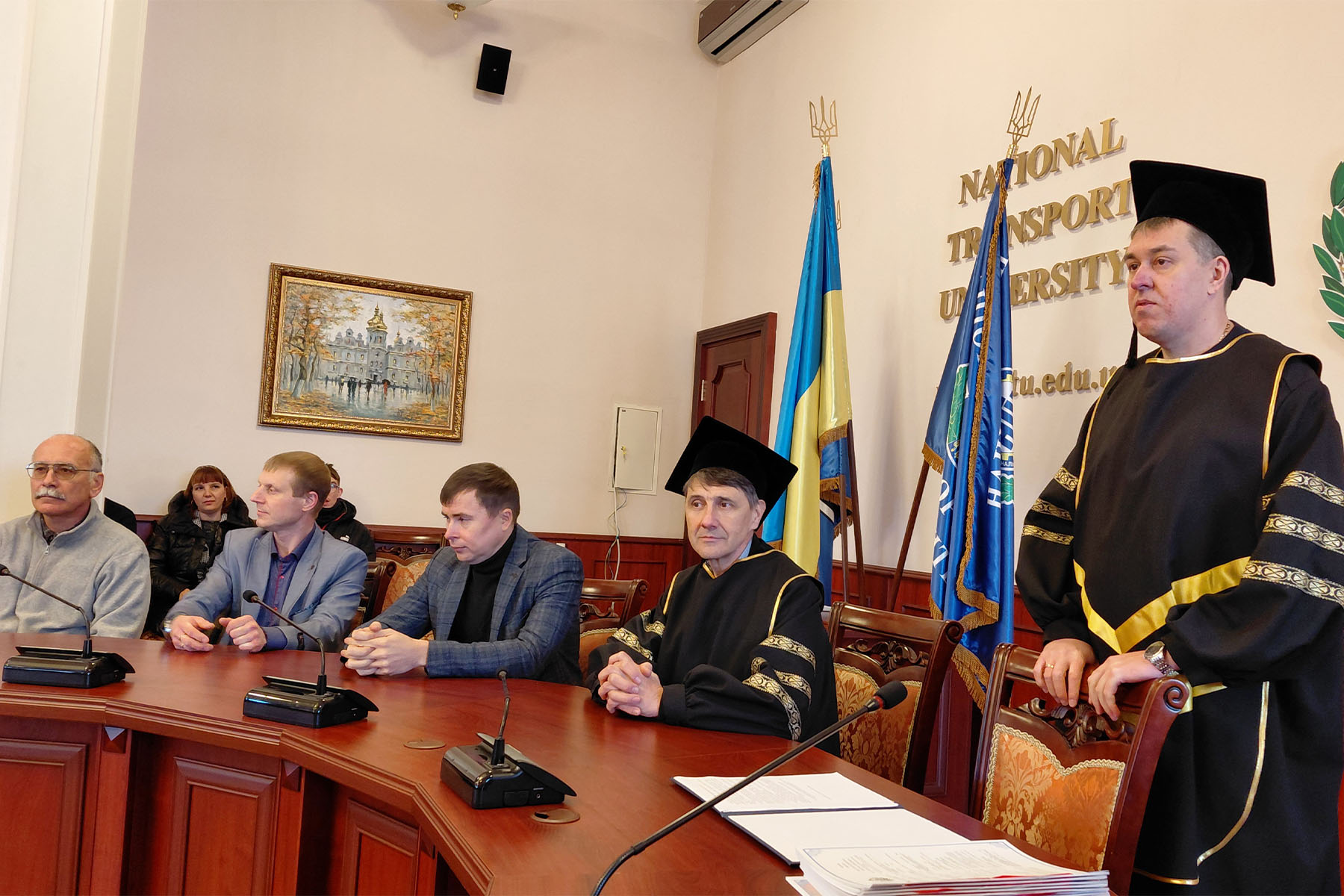 19 січня 2026 року в залі засідань Вченої ради Національного транспортного університету відбулася урочиста церемонія вручення дипломів випускникам автомеханічного факультету за освітньо-професійними програмами підготовки магістра. Попри складні погодні умови – сильний мороз та періодичні відключення електроенергії і теплопостачання, що, на жаль, супроводжують нас нинішньої зими й створюють додаткові труднощі як для працівників освіти, так і для студентів, захід пройшов у теплій, щирій та піднесеній атмосфері. До зали засідань, окрім випускників, завітали їхні батьки та друзі, а також викладачі, які прийшли привітати молодих фахівців із завершенням важливого етапу їхнього професійного становлення.