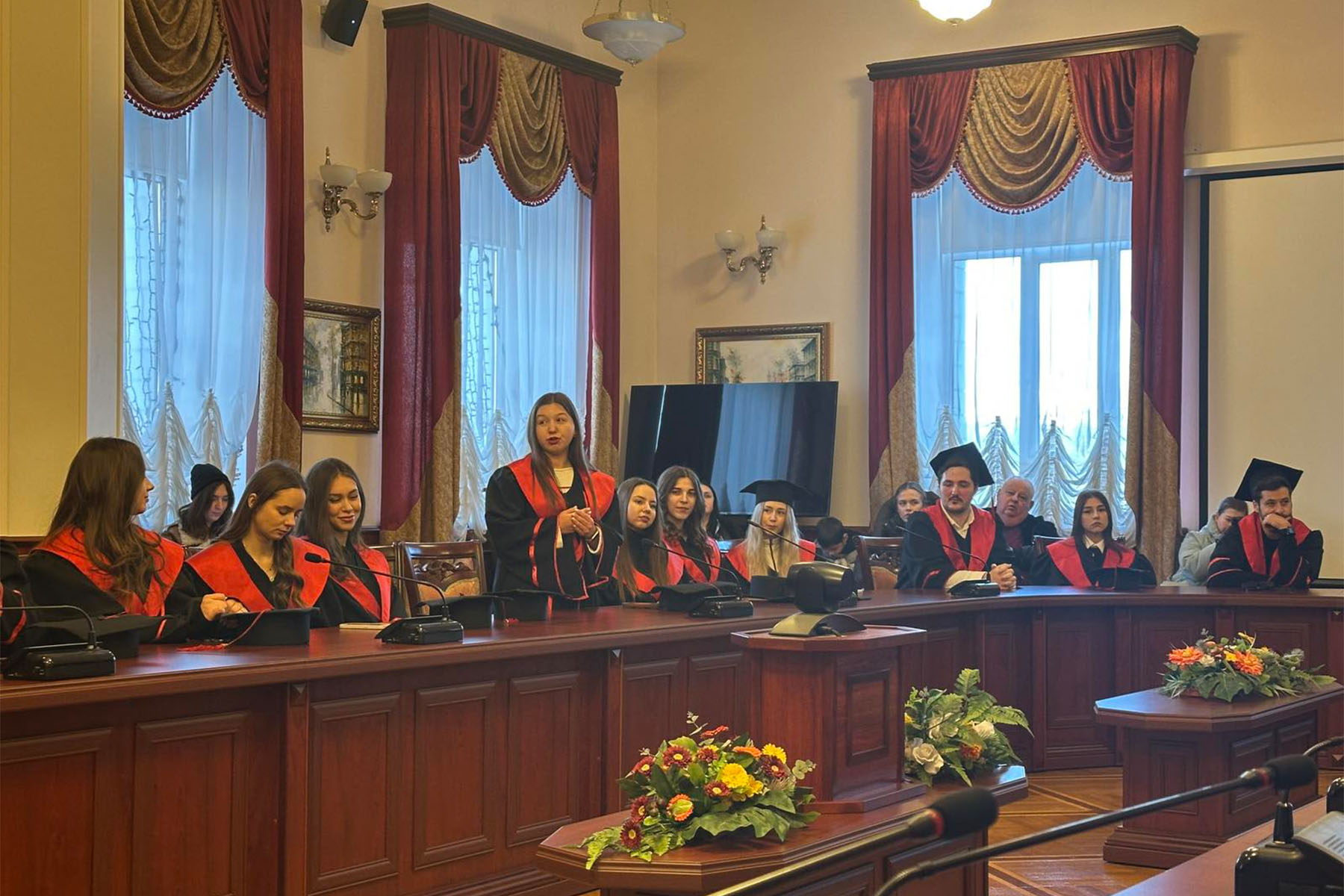 19 січня на факультеті економіки та права відбулося урочисте вручення дипломів магістрів – випускникам 2025-2026 навчального року. Свято пройшло в урочистій обстановці. На урочисте засідання прийшли привітати випускників професорсько-викладацький склад НТУ, зокрема з привітальними словами перед ними виступили проректор з навчальної та методичної роботи Ярова Р.В., в.о. декана факультету економіки та права Чебан О.М., завідувач кафедрою конституційного та адміністративного права Шатіло В.А., завідувачка кафедрою економіки Козак Л.С., в.о. завідувачки кафедрою іноземної філології та перекладу Горідько Н.М., професор кафедри філософії та педагогіки Бахтіярова Х.Ш.